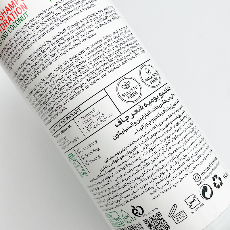 Misssuri Dry Hair Shampoo Sulfate Free Daily Hydrating Avocado and Coconut Oil 1000ml